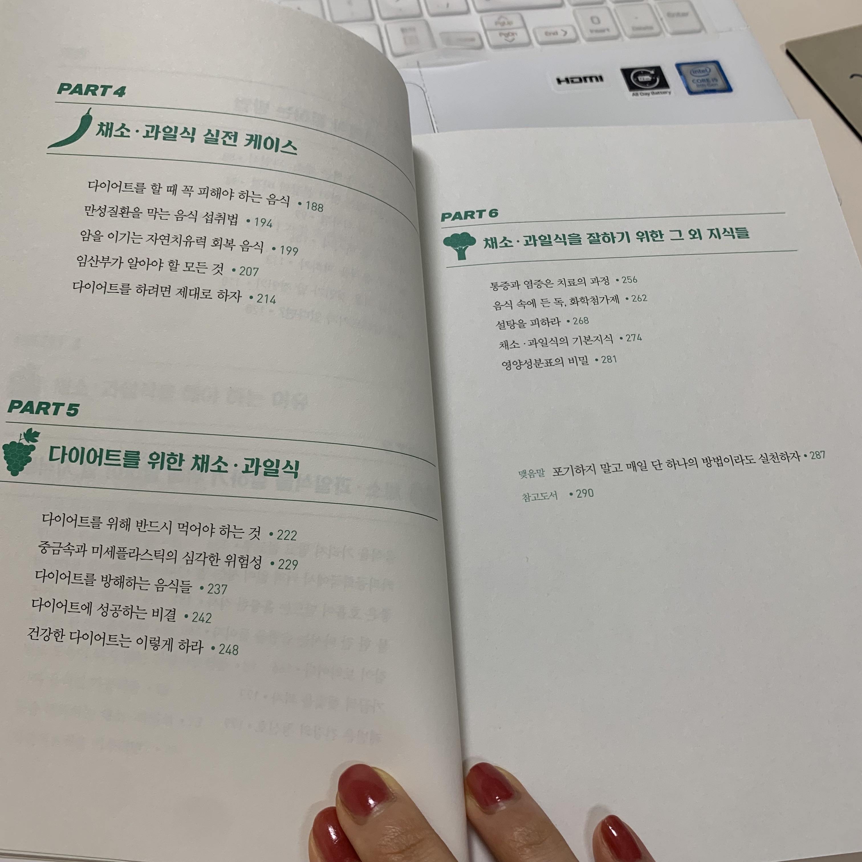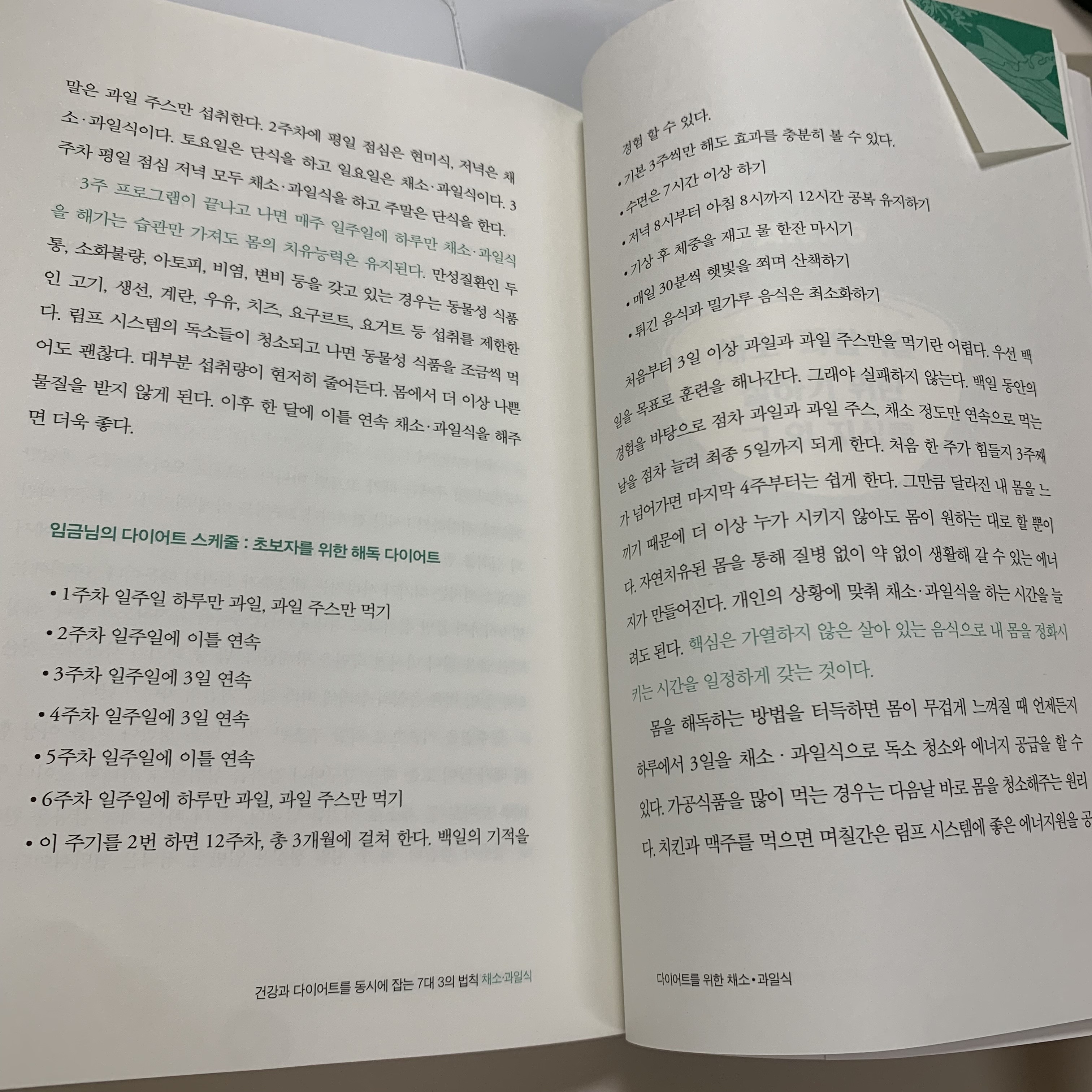 책에서 말하는 내용은 '짧게는 하루 길게는 3일까지 채소과일식 식단으로만 음식을 섭취해서 몸을 해독하자'