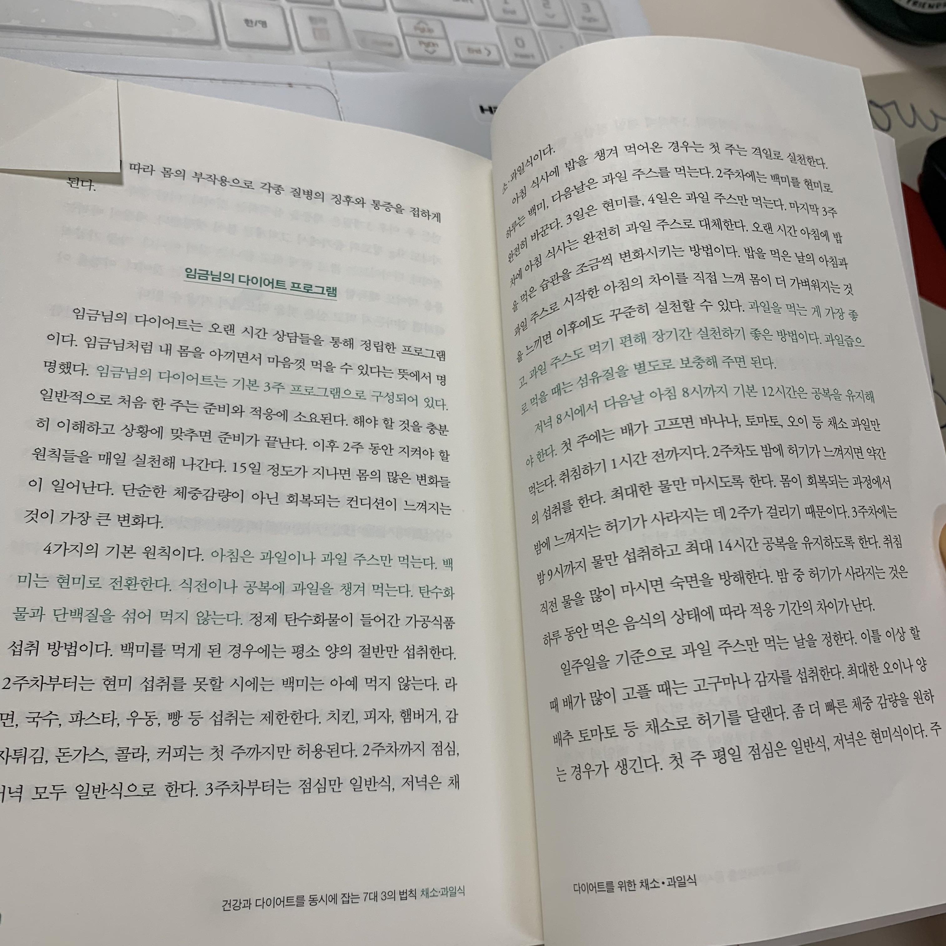 사실 갑자기 5일 내내 식단을 바꾸면 힘들 거 같아서 일주일에 하루는 단식, 일주일 하루는 채소과일식 이렇게 패턴을 짜봐도 좋을 거 같아요